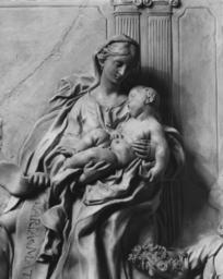 | Keywords: Lazzaro Giosafatti - Madonna and Child with Angels - Walters 27376 - Detail.jpg  A drapery has been pulled back to reveal the Virgin Mary standing inside a chapel tenderly holding her infant son In this sophisticated combination of high and low relief the actual light in the room creates shaded drapery folds The illusionism of the relief as in the leg of the angel that extends into the viewer's space is indebted to trends in earlier baroque sculpture but here the impression is much airier the Virgin's wavy draperies almost seem to move upwards Giosafatti would have learned this style while working in Rome where the influence of Gian Lorenzo Bernini remained strong This is possibly a model for a larger work in stone or stucco that is now lost 1757 Baroque terracotta cm 80 7 46 5 accession number 27 376 28610 Don Marcello Massarenti Collection Rome date and mode of acquisition unknown Henry Walters city Baltimore Walters Art Museum Henry Walters Acquired by Henry Walters with the Massarenti Collection 1902 place of origin Rome Italy Walters Art Museum license Baroque sculpture in the Walters Art Museum Lazzaro Giosafatti Media contributed by the Walters Art Museum needs category review Madonna and Child Media contributed by the Walters Art Museum needs artist update |