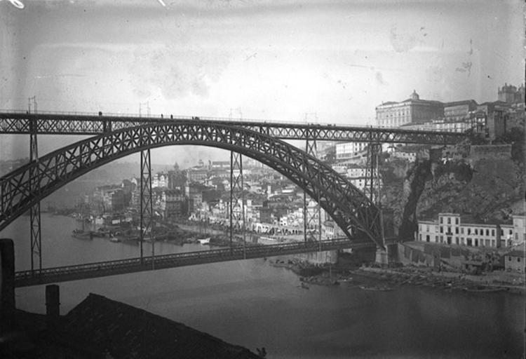 | Keywords: Le Douro et pont D.Luiz (Porto).jpg Information_field GEH record <blockquote> Chusseau-Flaviens Ch French active 1890s-1910s TITLE ON OBJECT Porto le Douro pont D Luiz ca 1900-1919 negative gelatin on glass 9 x 12 cm Gift of Kodak Pathe 75 0111 4279 NON-GEH NUMBER 001 A INSCRIPTION Porto le Douro pont D Luiz NOTES Catalogued 6/87 JBB SUBJECT architecture bridge / Dom Luis Bridge </blockquote> Institution George Eastman House http //www geh org/ar/chus/portugal/m197501114279_ful html http //www geh org/ar/strip06/m197501114279 jpg between 1905-10-27 circa 1915 01 š 🛈 Charles Chusseau-Flaviens see below Le Douro et le Pont D Luiz Porto jpg Information_field 1st uploaded as the 24 630 669<sup>th</sup> file in Wikimedia Commons Lic PD-old Photographs of Portugal by Charles Chusseau-Flaviens Photographs in the George Eastman House Collection Black and white photographs of Porto Black and white photographs of bridges Dom Luis I Bridge in the 1900s Dom Luis I Bridge in the 1910s Dom Luis I bridge from east |