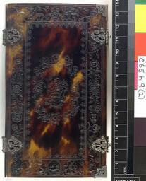 Keywords: Le Nouveau Testament - Upper cover (c65h9).jpg Style Floral Hand motif Panel design; Caption Upper cover; Colour Brown; Edge Unspecified exhibition history Decorative Technique Tooled in blind; Cover Material Tortoise shell With silver clasps and cornerpieces engraved Lower border has clasped hands motif with the words A Dieppe Lemol C109h9 has identical blind decoration c65h11 also has A Dieppe Lemol See Victoria Albert Musuem Conservation Journal number 50 Summer 2005 'Conservation of a Tortoiseshell boook Cover' by Karen Vidler which illustrates a similar binding object history Text 1668; Charenton; Unspecified object type Cc-zero place of creation Binding France place of discovery Unspecified British Library image http //www bl uk/catalogues/bookbindings/LargeImage aspx RecordId 020-000008408 ImageId ImageId 43809 Copyright BL Le Nouveau Testament Uploaded with GWToolset Le Nouveau Testament - Upper cover c65h9 http //www webarchive org uk/bldatasets/bindings/9026_4 jpg 19th-century bookbinding Bookbinding British Library Bookbindings |