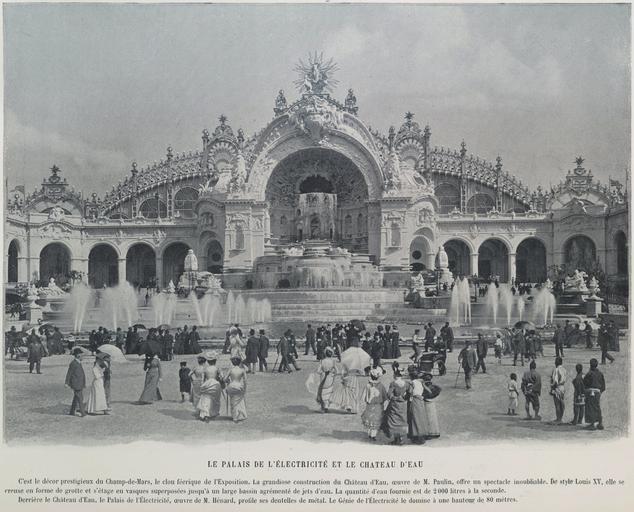 Keywords: Le palais de l'électricité et le Château d'eau, Exposition universelle 1900.jpg Electricity palace at the Paris 1900 World fair That building was entirely dedicated to technical and innovative advances using electricity The fountain in the center of the image was also a major attraction and was refered to as Le château d'eau 1900 photographic print 20 x 28 cm Institution Brown University Library object history exhibition history credit line Published in Neurdein frères and Maurice Baschet Le panorama Exposition universelle Paris Librairie d'Art Ludovic Baschet 1900 accession number 1303838249859377 PD-old Images of Paris from the Brown University Library Le panorama Exposition universelle Palais d'Electricité |