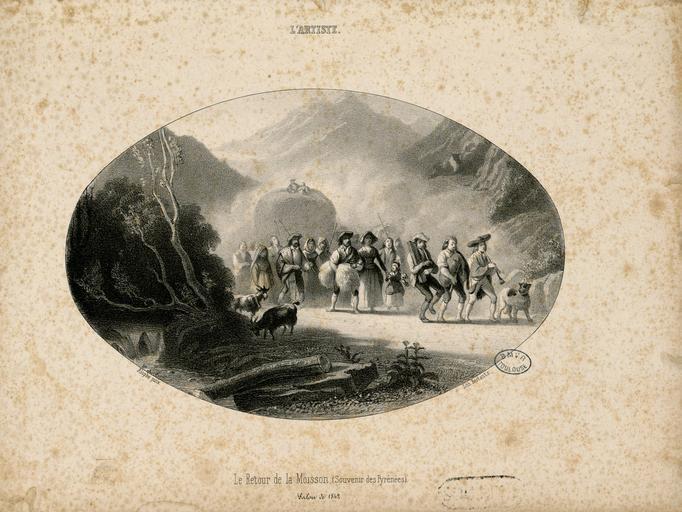 Keywords: Le Retour de la Moisson (Souvenir des Pyrénées) - Salon de 1849 - Fonds Ancely - B315556101 A ALOPHE 1 003.jpg 4 lithographies en noir et blanc extraits de différentes livraisons de L'Artiste - Planches séparées Planches 1 2 et 4 lithographiées par Frey d'après M Alophe - Planche 3 lithographiée par Bertauts d'après Alophe Ancely René 1876 - 1966 Possesseur fre public domain domaine public B315556101_A_ALOPHE_1_003 jpg image/jpeg 1 f de pl lithogr ; 28 cm http //numerique bibliotheque toulouse fr/collect/general/index/assoc//ark /74899/B315556101_A_ALOPHE_1_003 dir/B315556101_A_ALOPHE_1_003 jpg Bibliothèque municipale de Toulouse A-ALOPHE 1-3 Creator Marie-Alexandre Alophe http //catalogues toulouse fr/web2/tramp2 exe/do_keyword_search/log_in setting_key BMT1 servers 1home query p000166 Montagnard des Pyrénées d'Espagne Souvenir des Pyrénées Femme des Hautes Pyrénées arrivée à 90 sans aucune infirmité vignette http //numerique bibliotheque toulouse fr/collect/general/index/assoc//ark /74899/B315556101_A_ALOPHE_1_003 dir/B315556101_A_ALOPHE_1_003_thumb jpeg decade 1850 Le Retour de la Moisson Souvenir des Pyrénées - Salon de 1849 B315556101_A_ALOPHE_1_003 lithography - print Marie-Alexandre Alophe Bagpipes from France Dogs in art Goats in art Mountains in art Shepherds in France History of Pyrénées Children in art Musicians from France Harvesting in art Berets Flutes |