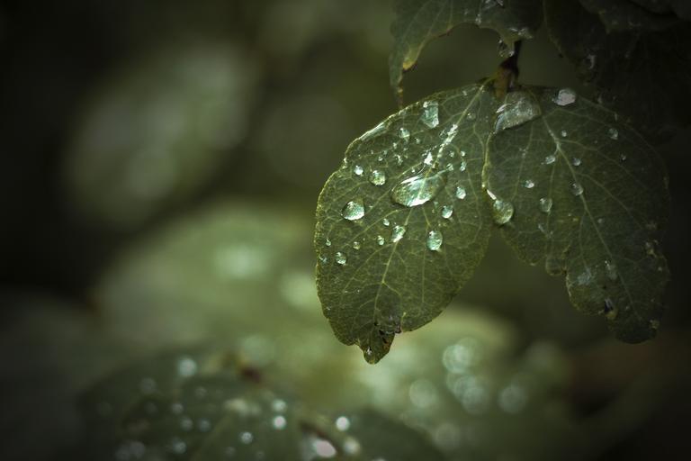 Keywords: leaf green tree forest rain drops close-up macro shrub bokeh