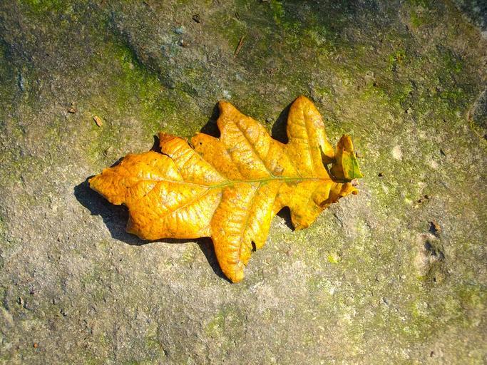Keywords: leaf nature stone rock leaves autumn solitary lonely golden brown single one