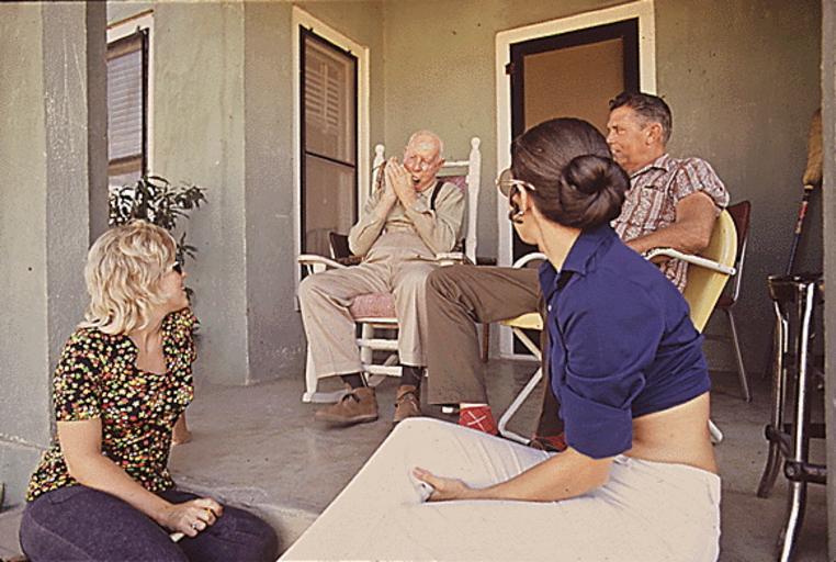 Keywords: LeakeyHarmonica1972.jpg Residents of Leakey Texas gather on porch listening to old man play harmonica 1972 Original caption LEAKEY RESIDENTS THE HARMONICA PLAYER IS 93 YEARS OLD 07/1972 Photograph by Marc St Gil for Series DOCUMERICA The Environmental Protection Agency's Program to Photographically Document Subjects of Environmental Concern compiled 1972 - 1977 NARA-image 554898 Converted from gif to jpg and border cropped before upload 1972-07 Marc St Gil Personality rights Unrestricted PD-USGov 1972 in Texas Old men of the United States Porches in Texas People of Real County Texas Music in 1972 Fashion in 1972 DOCUMERICA |