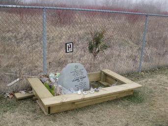 | Keywords: Leanne Freeman monument on Unwin Avenue, 2012-03-17 -b.jpg Leanne Freeman was a 23 year old woman of no fixed address whose body was found mortally wounded at 1 am 2011-11-29 on isolated Unwin Avenue She was declared DOA at the hospital where medical staff determined she died not in a traffic accident but by a gunshot wound to the head Police believed she was shot elsewhere On 2011-12-10 her clothes and belongings were found in a dumpster in Scarboro Police captured two suspects on 2011-12-16 and 2011-12-17 The Toronto Star started a trust fund after many of its readers were moved by her savage death and her families inability to pay to bury her On January 8 2012 a monument to Freeman was erected at the site her body was found on Unwin Avenue own 2012-03-17 Geo Swan <span class signature-talk >talk</span> Leanne Freeman monument |
