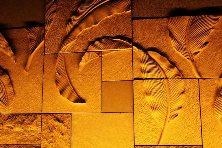 Keywords: leaves art background leaves art background brown sculpture tan gold blocks wall