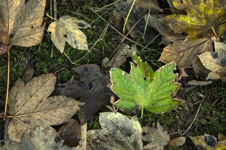Keywords: leaves autumn forest sheet green colors nature plants garden grass moss