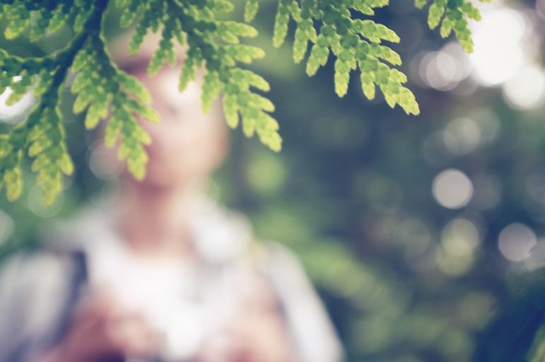 Keywords: leaves blurry nature green color bright light summer tree park spring season person male boy man soft day botany macro close up