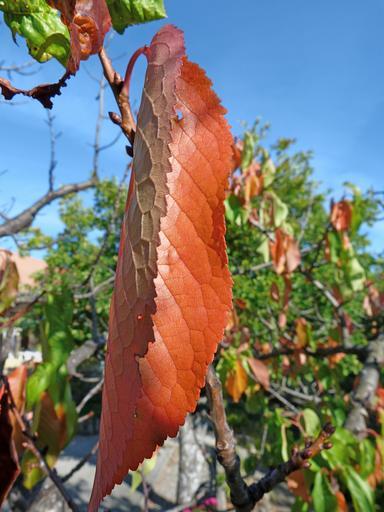 Keywords: leaves cherry foliage nature garden macro bright colors contrast