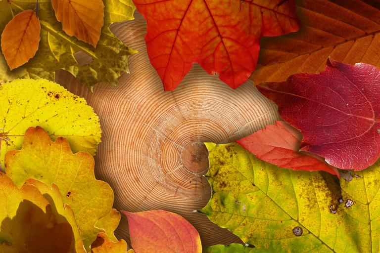 Keywords: leaves colorful color yellow red brown recoloring the leaves yellowish red dye anthocyanin tree stump annual rings
