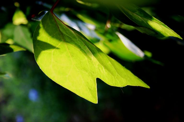 Keywords: leaves ivy young green translucent sunlight shade garden
