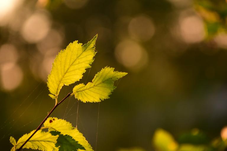 Keywords: leaves light green autumn back light sun bright shine through close beautiful peaceful spider webs background greeting card indian summer
