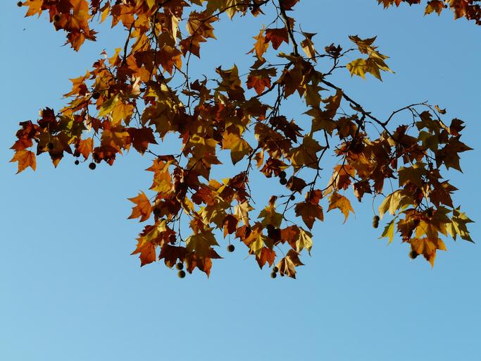 Keywords: leaves maple leaved plane bastard plane common plane hybrid plane london plane platanus hispanica plane platanaceae golden bright sun back light colorful color tree road autumn forest maple fruit