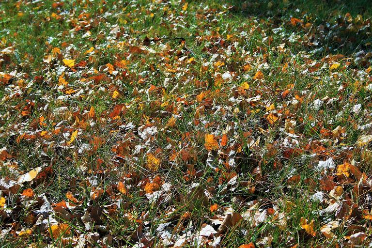 Keywords: leaves on lawn lawn green grass leaves autumn yellow brown russet