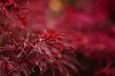 Keywords: leaves red maple scarlet autumn fall season color macro closeup water rain droplets wet nature plant flora park garden decorative