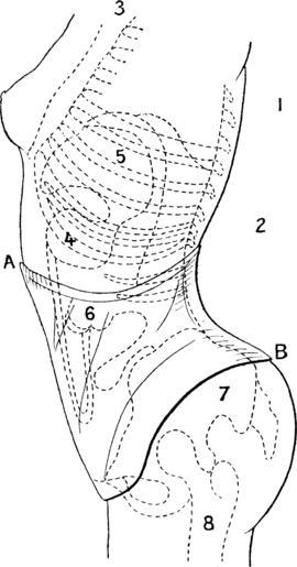 | Keywords: LeCorsetAnnexesFig3.gif http //fr wikisource org/wiki/Le_corset 3B_ C3 A9tude_physiologique_et_pratique_1900 PD-old <br>1 Côte <br>9 Fausses-côtes <br>5 Sternum <br>4 Estomac <br>5 Foie <br>6 Intestins <br>7 Os iliaque <br>8 Fémur <br>A bord supérieur du corset <br>B bord inférieur <br>1 Ribben <br>9 bøjelige-ribben <br>5 Brystben <br>4 Mavesæk <br>5 Lever <br>6 Tarme <br>7 hofteben <br>8 Lårben <br>A Overkant på Korset <br>B Underkant <br>1 Rib <br>9 Flexible-ribs <br>5 Sternum <br>4 Stomach <br>5 Liver <br>6 Intestines <br>7 Hip bone <br>8 Thigh bone <br>A Upper edge on corset <br>B Lower edge Results of corset use Le corset 1900 Language-neutral diagrams |