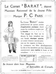 | Keywords: LeCorsetBARATdeposeMaintienRationnol.png fr Le Corset «BARAT» déposé Maintien Rationnel de la Jeune Fille<br>Marque P C PARIS<br>Le Corset «BARAT» résultat perfectionné de quinze années <i><b>d'applications pratiques</b></i> réunit tu toutes les conditions exigées par la <i><b>Faculté </b></i><br>Très dégagé du haut sur le devant le busc remplacé par une bande <b><i>élastique ajourée</i></b> ce corset n'exerce aucune pression sur les organes et laisse à la croissance son libre développement Le dos et les épaulettes par leur disposition maintiennent <b><i>sans rigidité</i></b> le buste et les omoplates <br>CHOIX<br><I>Les différents numéros correspondent aux âges indiqués néanmoins il y a lieu de tenir compte du plus ou moins de longueur du buste c'est-à -dire que pour une taille longue on devra choisir un numéro au-dessus de l ™Ã¢ge et inversement pour une taille courte un numéro au-dessus <br>Pour le tour de taille indiquer la mesure prise sur la chemise sans aucun serrage </I><br>Corset BARAT en satin écru souple<br>qualité extra <br>N° 1 pour 7 à 9 ans 14 Fr<br>N° 2 pour 10 à 12 ” 15 »<br>N° 3 pour 13 à 14 ” 20 »<br>N° 4 pour 15 à 16 ” 22 »<br>N° 5 pour 17 à 18 ” 24 »<br>APPLICATION<br><b>Le Corset BARAT</b> <I>doit être porté avec un écart de laçage de 2 centimètres au maximum <br>Le corset convenablement choisi posé et boutonné sur la jeune fille sera d'abord très descendu devant puis maintenu fermement par les jarretelles <br>On procédera ensuite au laçage et enfin on ajustera les épaulettes à la demande </I><br>Se trouve dans tous Magasins et spécialités de Corsets <br>Vente en Gros J CLAPIN fabricant 7 rue du Coq-Héron PARIS en The Corset «BARAT» an effective support for a young girl <br>trademark P C PARIS<br>The corset Barat is the perfected result of fifteen years of practical experience and it meets all the conditions required by the faculty <br>BARAT corset satin off-white soft extra quality da Korsettet Barat en effektiv støtte for en ung pige <br>varemærke P C PARIS<br>Korsettet Barat er det perfektionerede resultatet af femten Ã¥rs praktiske erfaringer og det opfylder alle de betingelser der kræves af fakultetet <br> BARAT korset satin off-white blød ekstra kvalitet <br>Nr 1 for 7 til 9 Ã¥r 14 Fr <br>Nr 2 for 10 til 12 ” 15 » <br>Nr 3 for 13 til 14 ” 20 » <br>Nr 4 for 15 til 16 ” 22 » <br>Nr 5 for 17 til 18 ” 24 » a French journal Illustré anonymus 1911 PD File LeCorsetBARATdepose png PD-Art Corset advertisements Girls in corset 1911 advertisements Fashion in 1911 |