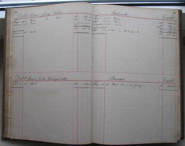 Keywords: Ledger of the fur trader Dedo from Leipzig, 1876-1885 043.jpg Hauptbuch des Leipziger Rauchwarenhändlers Dedo 1986-1975 Herrn Georg Toka Salonik Herrn Jules Koenigswerther Brüssel 042 044 Collection Kuhn 2010-12-29 10 14 07 Dedo PD-old Ledger of the fur trader Dedo in Leipzig 1876-1885 Furriers in Thessaloniki Toka Georg Furriers in Brussels Koenigswerther