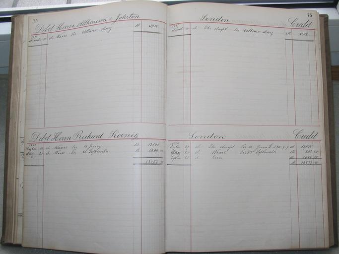 | Keywords: Ledger of the fur trader Dedo from Leipzig, 1876-1885 075.jpg Hauptbuch des Leipziger Rauchwarenhändlers Dedo 1986-1975 074 076 Herren Althausen Johston London Herrn Richard Koenig London Collection Kuhn 2010-12-29 14 56 39 Dedo PD-old Ledger of the fur trader Dedo in Leipzig 1876-1885 Furriers and fur traders of London named in the accountancy of Naoum Dedo in Leipzig Althausen Johston | ||||
