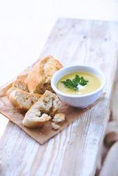 Keywords: leek potato soup bread healthy white bowl cooking