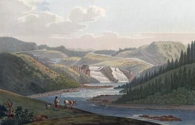 | Keywords: Leer Foss, near Drontheim (JW Edy plate 74).jpg Artwork Creator John William Edy en Leer Foss near Drontheim No LXXIV LEER FOSS NEAR DRONTHEIM This small cascade interesting to the inhabitants of Drontheim as a salmon leap is situated at an easy distance from that place in a pleasant part of the country where parties assemble for the amusement of observing the curious agility of the fish In the season of their visits sportsmen are seen on the rocks armed with spears and nets to strike and entangle them by which means many fine salmon are annually taken These fish have also another enemy to cope with ;if they miss their intended leap the porpoise who lies in ambush under the fall generally catches them The fall is divided by rocks into three parts two of which drive several saw-mills After rams or melting of snow these three cascades are united into one and then the rocks are overflowed by the current The great river above of which this is only a single branch takes its rise at a considerable distance up the country and on it are many beautiful and romantic falls particularly a larger one near this place called the greater Leer Foss which has its saw-mills also Prodigious quantities of timber are there sawn into deals the supply being derived from the trees felled in the extensive forests which are floated down to the lentz above in the usual manner At this place there are indications that the falls were in early times of a more considerable extent and on a level with the highest rocks which are below that of the main river Even now that river supplies a stream which is seen issuing from the woods and passes in a line with the fall considerably above it having its cascade also The basin and bed of the rapids below appear every where to have been rendered very capacious by the constant afflux of large bodies of water The rocks and shores about the falls are of a deep rust colour or dusky red not unlike old brickwork I have observed that the same colour prevails in and about the beds of many other falls in Norway The vegetation in the vicinity is pleasing and the trees are tall and straight The climate about these parts is considered as healthy as that of any part of Norway; indeed the same remark may apply to the whole northern coast The piercing frosts of winter form a cone of the frozen spray presenting the appearance of a screen with large holes; at times this frozen mass exhibits all the prismatic colours exceedingly vivid in circles and parts of circles When the ice breaks in the lakes and rivers above all the falls the pieces are carried with great velocity over them in an astonishing manner attended with great noise and danger to the machinery of the mills and loose timber which may happen to lie in their course or may have been lucklessly frozen in ere it could be got on shore with the boats; unfortunate cases have occurred in which men timber houses boats saw-mills cattle lentzes and all their contents have been precipitated in one dreadful mass over falls and driven down the rapids for miles between the rocks where no assistance could possibly be afforded; and their mangled remains have been collected in the sea Collapse bottom http //urn nb no/URN NBN no-nb_digibok_2011072910001 Boydell's picturesque scenery of Norway London 1820 Plate no 74 p 369 in scanned copy no-nb_digibok_2011072910001 PD-Art-100 John William Edy Boydell's picturesque scenery of Norway Øvre Leirfoss Waterfalls in art |