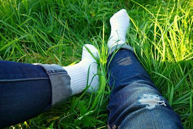 Keywords: leg foot body body part legs feet female sock socks jeans lying down laid back relaxing adult grass summer leisure outdoor denim