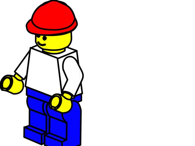 Keywords: lego builder construction figure toy blue white red hard hat worker labor contractor helmet foreman brickie
