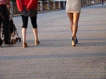 Keywords: legs women's details shoes heels woman quay bridge