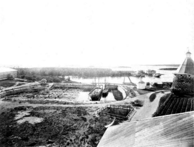 Keywords: Leicinger Solovki 33.jpg ru Соловецкий монасты ь Вид на док и бухту Благополучия с Белой башни Dry dock of Solovetsky Monastery