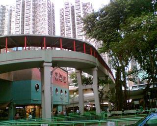 Keywords: LekYuenEst FootBrdge.jpg 源邨 接好運中心的天橋 own Self took photo 2006-07-01 Chong Fat zh Chinese Wikipedia Chong Fat Use Photoshop Elements to adjust colors Lek Yuen Estate Skyways in Hong Kong