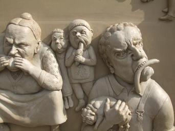 | Keywords: Lenk Ludwigs Erbe detail 05.jpg Detail der Skulptur Ludwigs Erbe von Peter Lenk Ludwigshafen am Bodensee Photograph by Veit Feger 2008 Sculpture Peter Lenk; Photo Veit Feger Written permission by the author Veit Feger to license as Public Domain 2009081010025951 Veit Feger Ludwigs Erbe - left-hand part Photos by Veit Feger |