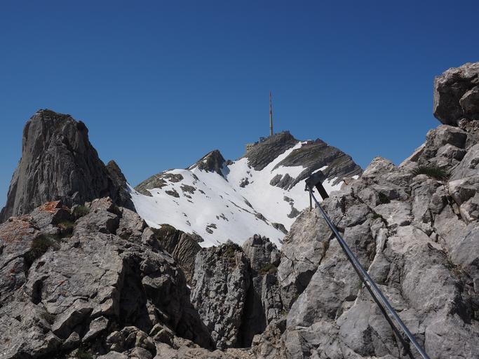 Keywords: lenses ridge climbing scramble rope the rope säntis mountain alpine snow swiss alps appenzell mountain station transmission tower alpstein alpstein region transmitter säntis reinforced concrete swisscom broadcast mountain summit mountain peak summit great wire rope
