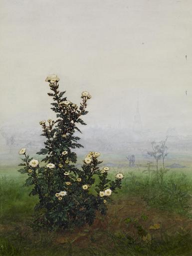 Keywords: Léon Bonvin - Flowering Chrysanthemum - Walters 371518 (2).jpg In this scene Bonvin has masterfully conveyed the time of day-the early morning when he was free to paint-a chrysanthemum plant is silhouetted against an uncultivated patch of wild carrots grasses and weeds In the mid-ground a peasant stoops toiling in the soil; discernible through the morning mists rendered in white wash are houses and church spires An inscription on the reverse of the sheet identifies the site as the plain of Issy just outside Paris's fortifications In the 1860s both Vaugirard and the adjoining village of Issy were rapidly being developed to provide housing for those who had been displaced by Baron Haussmann's transformation of the core of Paris 1863 watercolor gouache iron gall ink and pen heightened with gum varnish over graphite underdrawing on moderately textured moderately thick cream wove paper cm 24 3 18 6 accession number 37 1518 9003 William T Walters Baltimore February 28 1863 by commission George A Lucas as agent Henry Walters city Baltimore Walters Art Museum Henry Walters Commissioned by William T Walters 1863 Signature and date In brown ink lower right Léon Bonvin 1863; Number In graphite verso 33; Watermark J Whatman Turkey Mill The Drawings and Watercolors of Léon Bonvin The Cleveland Museum of Art Cleveland; The Walters Art Gallery Baltimore 1980-1981 A Vanishing Meadow The Watercolors of Léon Bonvin The Walters Art Gallery Baltimore 1994 Parallels and Precedents Baltimore's George A Lucas Collection Baltimore Museum of Art Baltimore 1995 Léon Bonvin 1834-1866 Government House Annapolis 1997 The Essence of Line place of origin France <gallery> File Léon Bonvin - Flowering Chrysanthemum - Walters 371518 jpg </gallery> Walters Art Museum license 2D The Essence of Line Paintings by Léon Bonvin in the Walters Art Museum Media contributed by the Walters Art Museum needs category review |