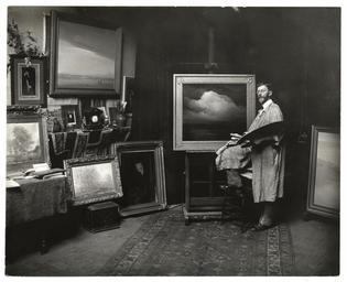 | Keywords: smithsonian institution smithsonianinstitution new york armory show 1913 newyorkarmoryshow1913 black & white photo of male artist at an easel surrounded by other completed work blackwhitephotoofmaleartistataneaselsurroundedbyothercompletedwork archives of american art archivesofamericanart monochrome Description: Annotated on reverse: "Studio in Brooklyn, Leon Dabo c. 1910, He is standing next to "the Wave" [should read "The Cloud"], now in Metropolitan Museum of Art, N.Y." Stamped Peter A. Juley & Son. Dabo, Leon, 1868-1960 Creator/Photographer: Peter A. Juley & Son Medium: Black and white photographic print Dimensions: 21 cm x 26 cm Date: c. 1910 Persistent URL: www.aaa.si.edu/collections/images/detail/leon-dabo-his-br... Repository: Archives of American Art Accession number: aaa_miscphot_5417 Description: Annotated on reverse: "Studio in Brooklyn, Leon Dabo c. 1910, He is standing next to "the Wave" [should read "The Cloud"], now in Metropolitan Museum of Art, N.Y." Stamped Peter A. Juley & Son. Dabo, Leon, 1868-1960 Creator/Photographer: Peter A. Juley & Son Medium: Black and white photographic print Dimensions: 21 cm x 26 cm Date: c. 1910 Persistent URL: www.aaa.si.edu/collections/images/detail/leon-dabo-his-br... Repository: Archives of American Art Accession number: aaa_miscphot_5417 |