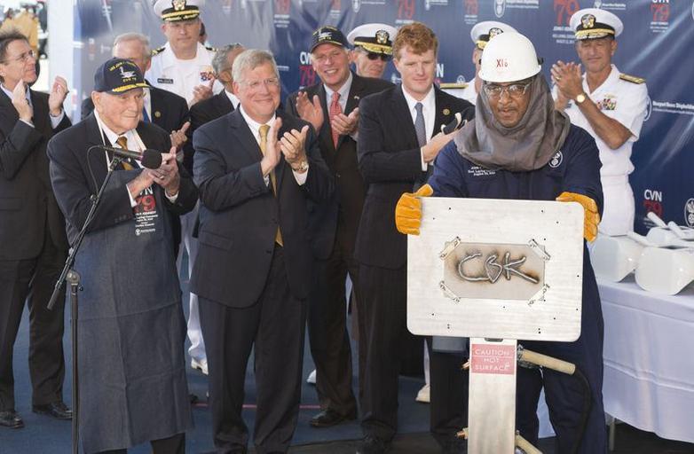 | Keywords: Leon Walston, a Newport News Shipbuilding welder from Massachusetts, displays the welded initials of Caroline Kennedy, the sponsor of the aircraft carrier John F. Kennedy (CVN 79) (20847478085).jpg NEWPORT NEWS Va Aug 22 2015 Leon Walston a Newport News Shipbuilding welder from Massachusetts displays the welded initials of Caroline Kennedy the sponsor of the aircraft carrier John F Kennedy CVN 79 Also pictured left to right are Rear Adm Earl Yates the first commanding officer of the aircraft carrier USS John F Kennedy CV 67 ; Newport News Shipbuilding President Matt Mulherin; Virginia Gov Terry McAuliffe; and Rep Joseph Kennedy Huntington Ingalls Industries photo by Chris Oxley/Released 150822-N-ZZ999-001 Join the conversation http //www navy mil/viewGallery asp www navy mil/viewGallery asp http //www facebook com/USNavy www facebook com/USNavy http //www twitter com/USNavy www twitter com/USNavy http //navylive dodlive mil navylive dodlive mil http //pinterest com pinterest com https //plus google com plus google com https //www flickr com/photos/usnavy/20847478085/ 150822-N-ZZ999-001 2015-08-24 11 52 https //www flickr com/people/56594044 N06 Official U S Navy Page from United States of America PD-USNavy Official U S Navy Imagery https //flickr com/photos/56594044 N06/20847478085 2016-03-04 21 11 56 United States Government Work USS John F Kennedy CVN-79 150822-N-ZZ999-001 Navy https //www flickr com/photos/usnavy/20847478085/in/photolist-9MvS8m-xLdLVk-dPwRzS-dPwRAG Files from the U S Navy Flickr stream |