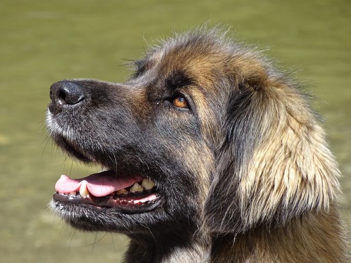 Keywords: leonbergers dog blond german longhaired pointer female pet fur animal close portrait cute thoroughbred head snout eyes curious dog look