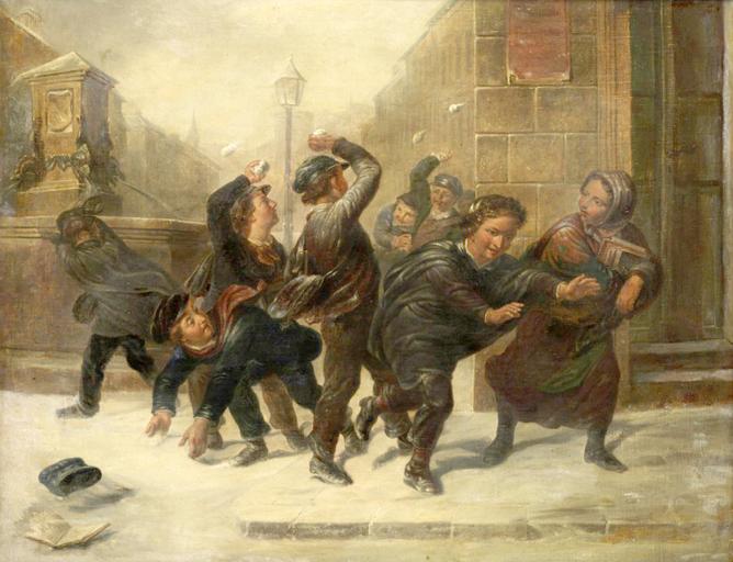 | Keywords: Leopold Till Schneeballschlacht.jpg Schneeballschlacht oil canvas 43 x 53 cm http //www hampel-auctions com/ century 19 Leopold Till 1830 “1893 PD-art-100 Snowball fights in art Groups of children Children in action Children in art Cityscape paintings Images from Hampel Auctions Leopold Till 19th-century childhood in painting |