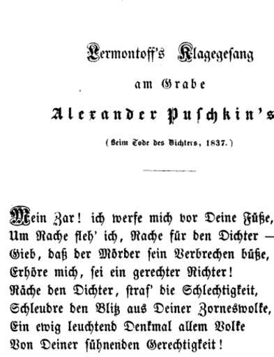 | Keywords: Lermontoff, 1852, p.49.png ru Из книги Gesammelte Schriften Gesammt-Ausg in zwölf Bänden Berlin 1852 Пе вая публикация стихотво ения Ле монтова а сме ть Пушкина на немецком языке http //books google ru/books id l5QBAAAAMAAJ pg PA3 dq v onepage q f false Friedrich Martin von Bodenstedt 1852 Lermontov Gallery PD-old |