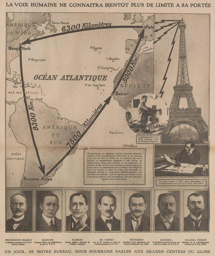 Keywords: Les perspectives offertes par la TSF en 1919.jpg fr Les possibilités offertes par la radio en 1919 L'exemple du négoce Dessin publié par hebdomadaire français Le Miroir 16 mars 1919 en The possibilities offered by the radio in 1919 Approximate translation The human voice will know soon boundary diffusion One day our office we can talk to the major centers of the world Text in central example From his office a Parisian dealer request by phone to his correspondent in New York to procure 2 000 bags of Brazil nuts This correspondent not finding them on the market in New York he phone in Buenos Aires Buenos Aires did not because it just sent a large shipment to Dakar Dakar telephone it therefore asks her représenant to sell the 2 000 bags Parisian dealer The answer arriving in less than an hour it will have traveled about 28 000 km Bottom image gallery with senior engineers who worked on the radio Drawing published by French weekly Le Miroir 16 March 1919 1919-03-16 Le Miroir March 16 1919 pages 8-9 via http //gallica bnf fr/ark /12148/cb40360453x/date1918 Gallica fr author anonymous-EU PD-US-1923 Uploaded with UploadWizard Eiffel Tower from Champ-de-Mars before 2000 Le Miroir 1909 1921 TSF Eiffel Tower Gustave Ferrié History of telecommunications History of radio Guglielmo Marconi |
