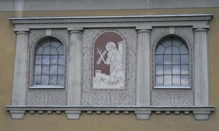 Keywords: LesniceKostelRelief.jpg cs Kostel svatého Jakuba Většího Lesnice - moderní reliéf na stěně kostela Own Martin Vavřík 6 12 2008 Church of Saint James the Greater Lesnice Church windows in the Czech Republic Sgraffito in the Czech Republic