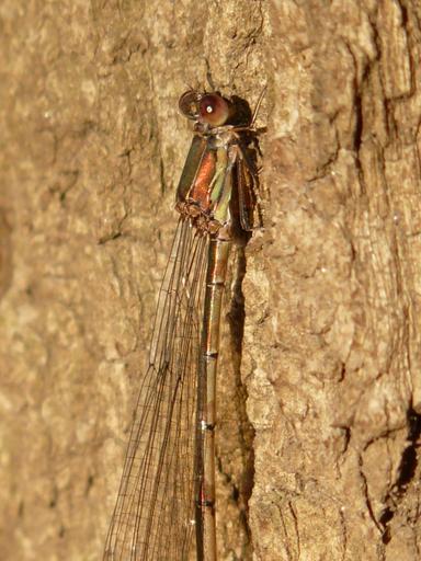 Keywords: lestes viridis dragonfly insect compound stalk eyed common weidenjungfer chalcolestes viridis great binsenjungfer small species of dragonfly animal tree disguised sun flight insect macro close nature tender eye wing fragile