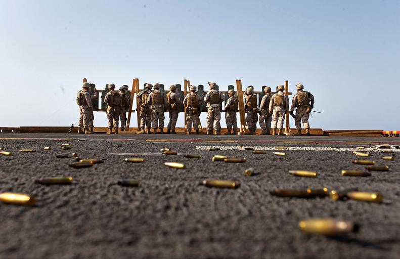 Keywords: Let the Brass Fall Where It May (7845155016).jpg Marines with Battalion Landing Team 1st Battalion 2nd Marine Regiment 24th Marine Expeditionary Unit replace their targets after conducting a multiple target live-fire range on the flight deck of USS Iwo Jima Aug 19 2012 The Marines conduct various live-fire ranges while underway to keep their skills sharp during deployment The 24th MEU is deployed with the Iwo Jima Amphibious Ready Group as a theater reserve force for U S Central Command and is providing support for maritime security operations and theater security cooperation efforts in the U S Navy's 5th Fleet area of responsibility U S Marine Corps photo by Gunnery Sgt Chad Kiehl https //www flickr com/photos/marine_corps/7845155016/ Let the Brass Fall Where It May 2012-08-19 08 08 https //www flickr com/people/40927340 N03 Marines from Arlington VA United States PD-USGov United States Marine Corps Official Page https //flickr com/photos/40927340 N03/7845155016 2016-09-03 23 13 31 United States Government Work 24th Marine Expeditionary Unit |
