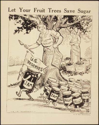 | Keywords: "Let Your Fruit Trees Save Sugar.", ca. 1917 - ca. 1919 - NARA - 512514.jpg  Scope and content General notes 512514 Local identifier 4-P-75 U S Food Administration Educational Division Advertising Section 01/15/1918 - 01/1919 NARA-Author Brinkerhoff R M Artist 5218885 <br /> Still Picture Records Section Special Media Archives Services Division NWCS-S National Archives at College Park 8601 Adelphi Road College Park MD 20740-6001 circa 1917 1919 Record group Record Group 4 Records of the U S Food Administration 1917 - 1920 Record group ARC 333 World War I Posters compiled 1917 - 1919 Series ARC 512439 File unit File unit ARC Variant control numbers NAIL Control Number NWDNS-4-P-75 Other versions <gallery> File Let_Your_Fruit_Trees_Save_Sugar _ca _1917_-_ca _1919_-_NARA_-_512514 tif tif File Let_Your_Fruit_Trees_Save_Sugar _ca _1917_-_ca _1919_-_NARA_-_512514 jpg jpg </gallery> NARA-cooperation PD-USGov World War I posters of the United States Victory gardens United States Food Administration 1910s political cartoons of the United States Trees in art Home canning Jars Parades in art Jam Sugar advertising |