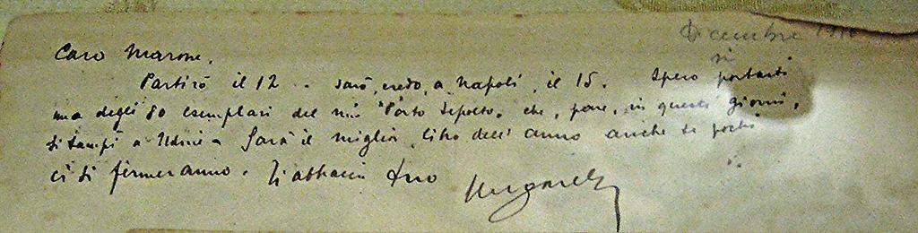 | Keywords: giuseppe ungaretti giuseppeungaretti national library nationallibrary naples italy gherardo marone gherardomarone wwi world war worldwar 1st world war 1stworldwar prima guerra mondiale primaguerramondiale great war greatwar grande guerra grandeguerra text document writing Lettera dal fronte della prima guerra mondiale, del dicembre 1916, di Giuseppe Ungaretti all'amico Gherardo Marone, nella quale preannuncia il suo arrivo a Napoli e la consegna di una delle 80 copie di "Porto Sepolto". Dal soggiorno a Napoli nascerà quel capolavoro della poesia moderna che è "Natale". Napoli, Biblioteca Nazionale. Lettera dal fronte della prima guerra mondiale, del dicembre 1916, di Giuseppe Ungaretti all'amico Gherardo Marone, nella quale preannuncia il suo arrivo a Napoli e la consegna di una delle 80 copie di "Porto Sepolto". Dal soggiorno a Napoli nascerà quel capolavoro della poesia moderna che è "Natale". Napoli, Biblioteca Nazionale. |