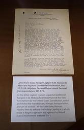 | View Original: | Letter from Texas Ranger Captain W. M. Hanson re the 18th Amendment, May 25, 1918 - Lorenzo de Zavala State Archives and Library Building - Austin, Texas - DSC08355.jpg (-3109x4819) | |||