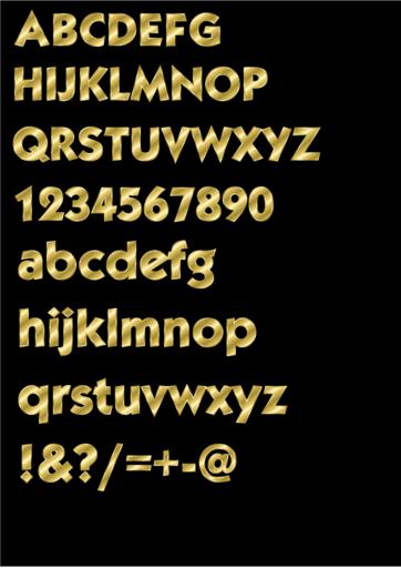 Keywords: letters alphabet numbers typeset golden numerals lower case upper case symbols