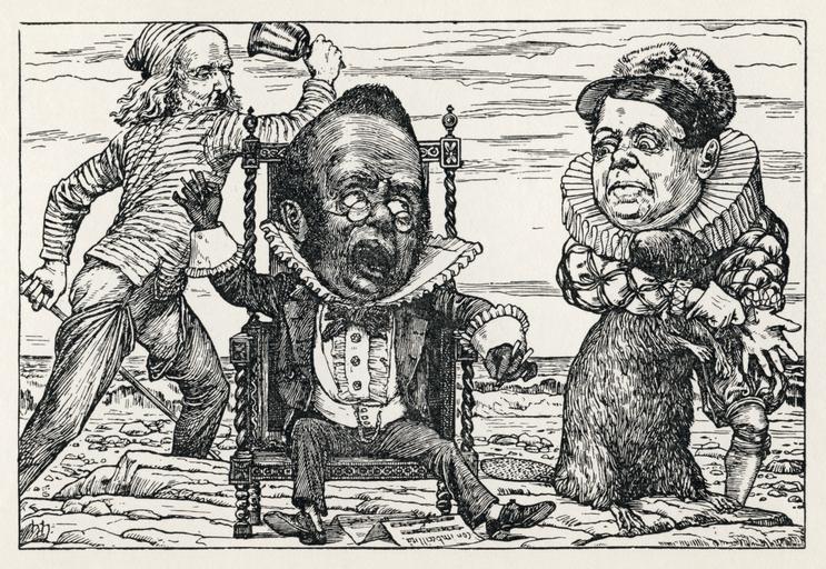 Keywords: Lewis Carroll - Henry Holiday - Hunting of the Snark - Plate 9.jpg assessments c 2009 1 Lewis Carroll - Henry Holiday - Hunting of the Snark - Plate 1 jpg 1 The Hunting of the Snark Ninth of Henry Holiday's original ilustrations to The Hunting of the Snark by Lewis Carroll The Hunting of the Snark An Agony in Eight Fits by Lewis Carroll MacMillan and Co Limited St Martin's Street London 1931 From Fit the Seventh The Banker's Fate The Banker is attacked by a Bandersnatch and goes insane However unlike the normal results of terror which might cause someone to go white as a sheet in the face He was black in the face and they scarcely could trace The least likeness to what he had been While so great was his fright that his waistcoat turned white-- A wonderful thing to be seen Down he sank in his chair--ran his hands through his hair-- And chanted in mimsiest tones Wrds whose utter inanity proved his insanity While he rattled a couple of bones Originally 1876 this edition 1931 Henry Holiday 1839-1927 after Lewis Carroll Real name Charles Lutwidge Dodgson 1832-1896 PD-Old For general use Lossless restored version Original scan from 1st edition 1876 Minor cleanup removal of scratches stains and dirt on the scanner bed levels adjustment rotated slightly The Hunting of the Snark The Hunting of the Snark An Agony in Eight Fits 19 27 20 November 2009 UTC The Hunting of the Snark Henry Holiday The Hunting of the Snark Bells in art Grimacing in art |