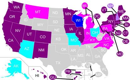 | Keywords: LGBT employment discrimination law in the United States.svg  800080 Sexual orientation and gender identity all employment BA75FF Sexual orientation all employment gender identity only in state employment 0000ff Sexual orientation all employment ff00ff Sexual orientation and gender identity state employment only 00ffff Sexual orientation state employment only cccccc No state-level protection for LGBT employees en US LGBT civil rights August 2008 png + updates Fortuynist November 24 2011 UTC 100px with a proportional Alaska LGBT-related maps of the United States |