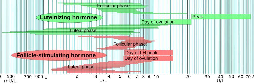 MAKE A MEME View Large Image LH and FSH in menstrual cycle.svg Reference ranges for luteinizing hormone and follicle-stimulating hormone throughout the menstrual cycle Detail from picture in en Reference ranges for blood tests The y-axis represent time throughout the ...