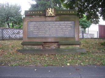 Keywords: Libcice nad Vltavou PZ CZ - WWI memorial 015.jpg Pomník padlým v 1 světové válce ul Vltavská Libčice nad Vltavou okres Praha-západ World War I memorial in Libčice nad Vltavou Prague-West District Czech Republic 50 12 01 7 N 14 21 44 3 E region CZ_type landmark_scale 10000_heading W 0 cellpadding 15 cellspacing 0 style background ffbbbb; align center - text-align center text-align center PADL M text-align center VOJÍNŮM - 5 style text-align center; - text-align center; 3 0 cellpadding 5 cellspacing 0 style background bbbbbb; align center - 3 style text-align center; DENEMARK FANTIŠEK HLAVAT VÁCLAV HOUBA RTUDOLF KEJŘ JOSEF - 3 style text-align center; KOLÍNSK JINDŘICH MAL GUSTAV MARTÍNEK JOSEF MICHALEC BOHUMIL - 3 style text-align center; PÁNEK JAN PAVLÍK JOSEF PETŘINA FRANTIŠEK PROKŮPEK VÁCLAV - 3 style text-align center; RŮŽEK JOSEF STOUPA JOSEF SVOBODA VÁCLAV TLUST KAREL - 3 style text-align center; TRINKMOC ANTONÍN VIK ANTONÍN VIŠTEIN ANTONÍN - 3 style text-align center; VLASÁK JAROSLAV VOTOČEK JAN VOTOČEK JOSEF - 3 style text-align center; VOTOČEK VÁCLAV ZAVADIL FRANTIŠEK - 5 style text-align center; - text-align center; 1914 1918 Vltavská Libčice nad Vltavou World War I memorials in Prague-West District Sculptures in Libčice nad Vltavou |